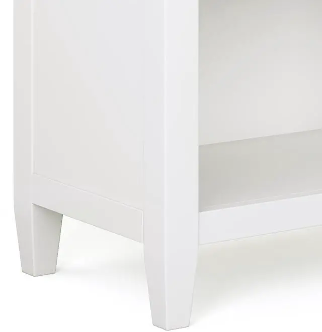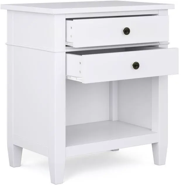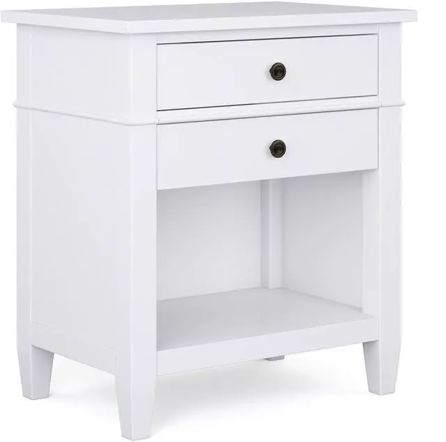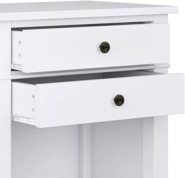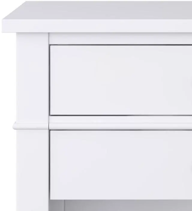 Features two (2 ) spacious drawers with metal drawer glides and an open bottom storage area