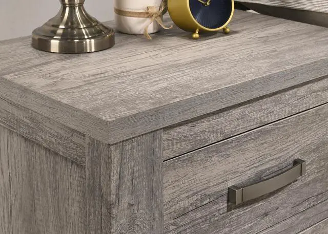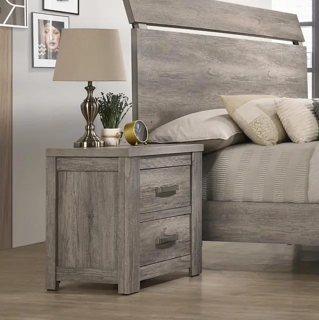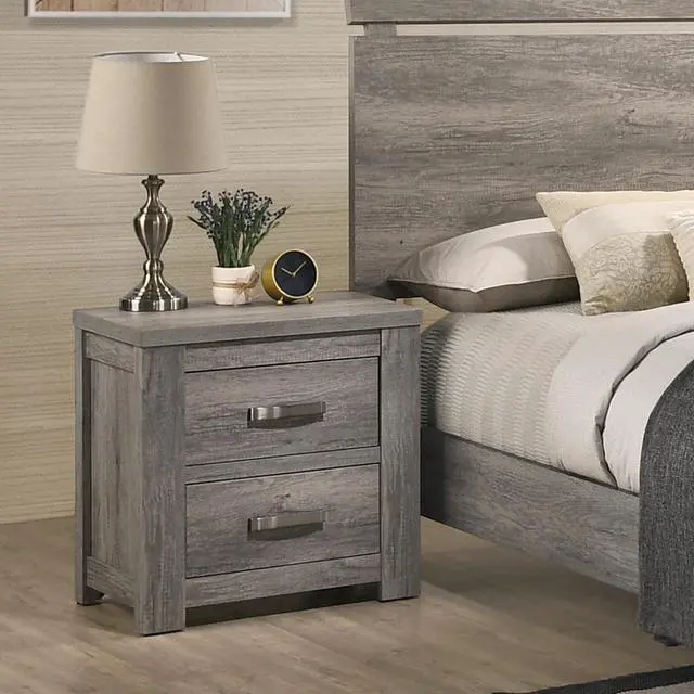 Floren Contemporary Weathered Wood Two-Drawer Nightstand, Gray