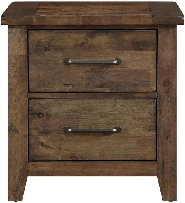 Classic transitional design serves as a base for the natural qualities of the solid wood utilized to create the rustic look of these Collection. Metal hardware furthers the authentic rustic look of the nightstand while a burnished finish serves to highlight the solid wood grain while allowing each plank to serve as a unique accent to the overall design. Product Dimensions:- Overall Dimension: 26" x 17.75" x 27.25"H Drawer interior: 17.25" x 13.75" x 6.75" (2) Listing Includes :- One Nightstand Only. Simple assembly required
