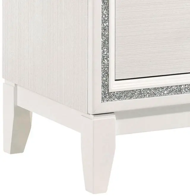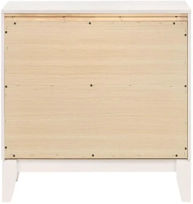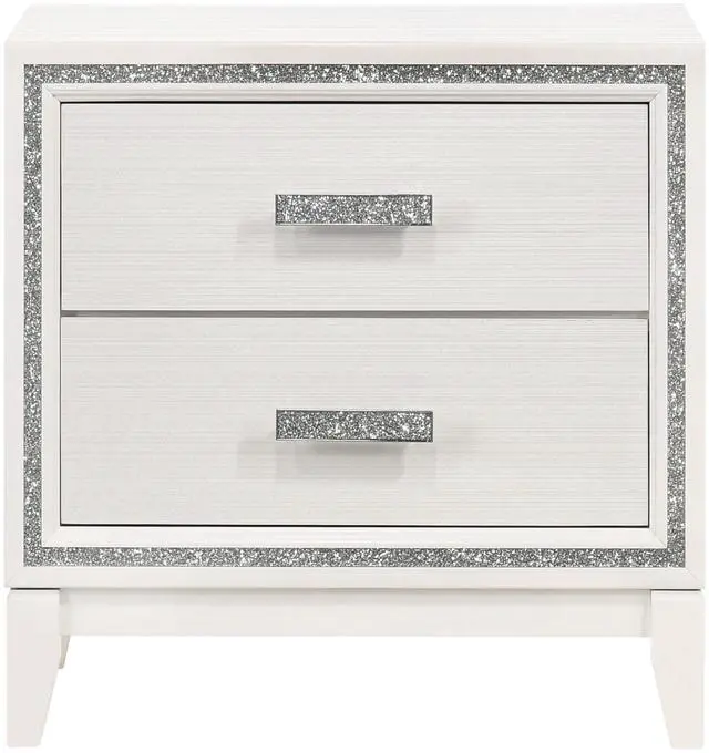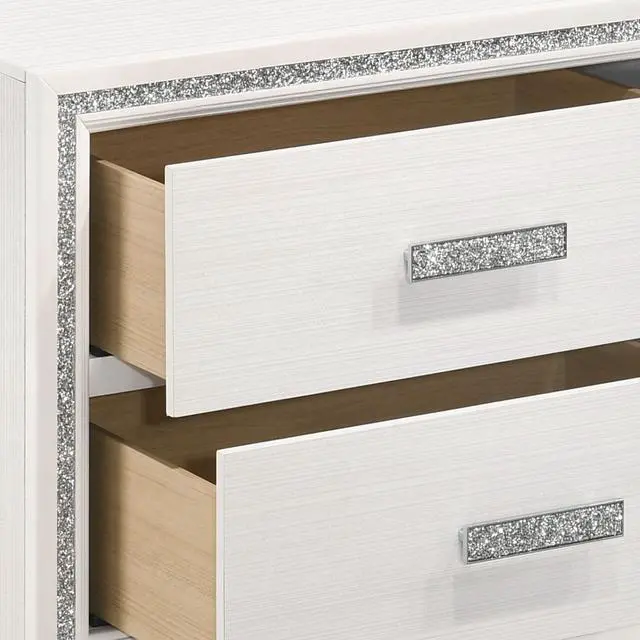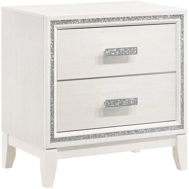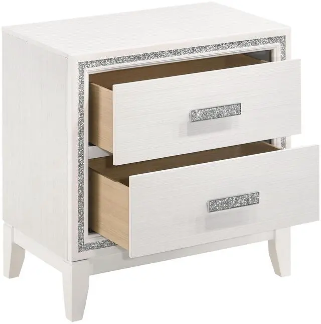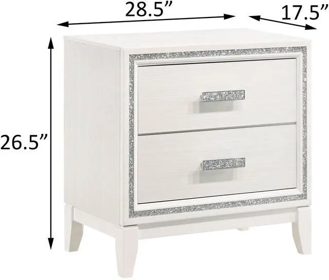 This two-drawer nightstand provides generous storage, keeping your essentials neatly organized and easily accessible. Its modern design, infused with a touch of glam flair, adds a stylish and contemporary element to your bedroom decor, while the safety stop mechanism in each drawer ensures smooth and controlled closing, enhancing both convenience and safety.