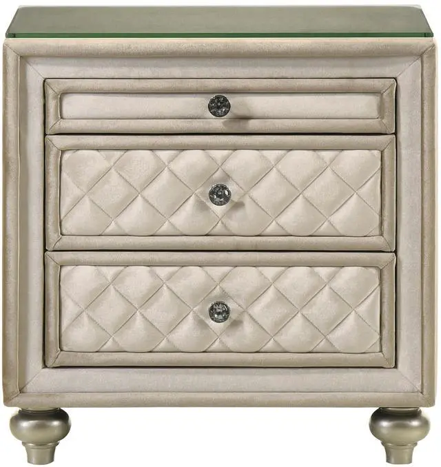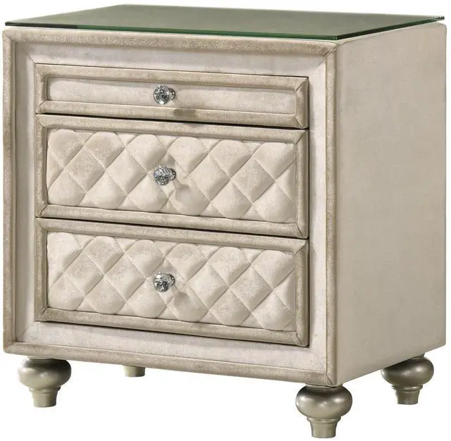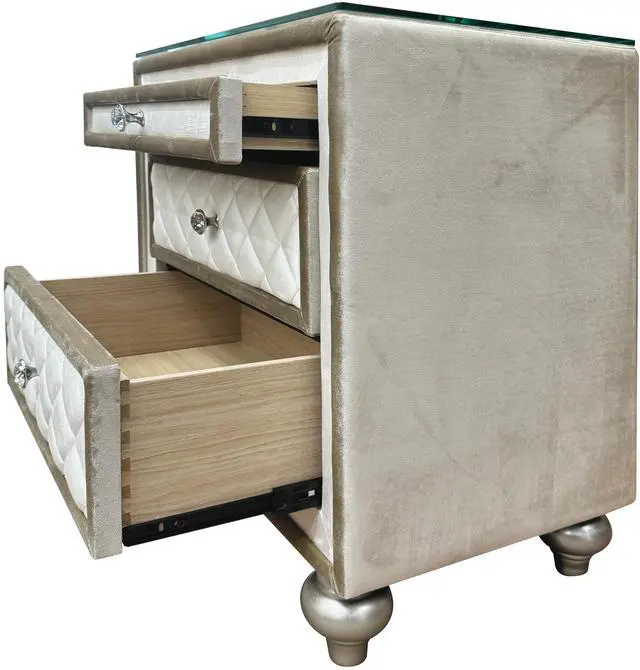 Experience the perfect blend of elegance and functionality with tufted drawers featuring diamond-shaped patterns and sparkling crystal knobs. Sturdy wooden construction and velvet-lined interiors ensure durability while providing a luxurious touch to any space.