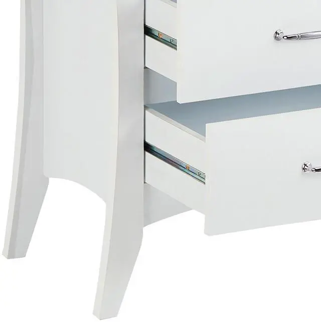 Enhance your bedroom with our elegant rectangular nightstand, featuring a sturdy wooden case-frame and stylish tapered legs. Offering practical storage with two spacious drawers, each equipped with smooth side metal glides, this nightstand combines functionality with timeless design.