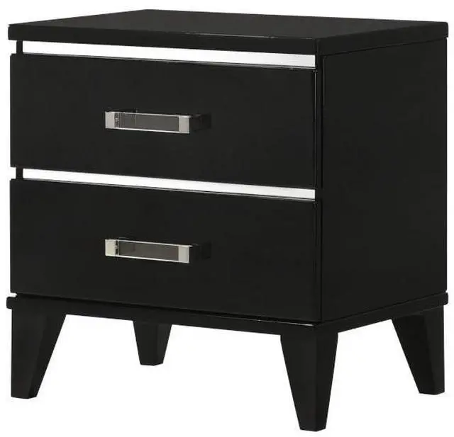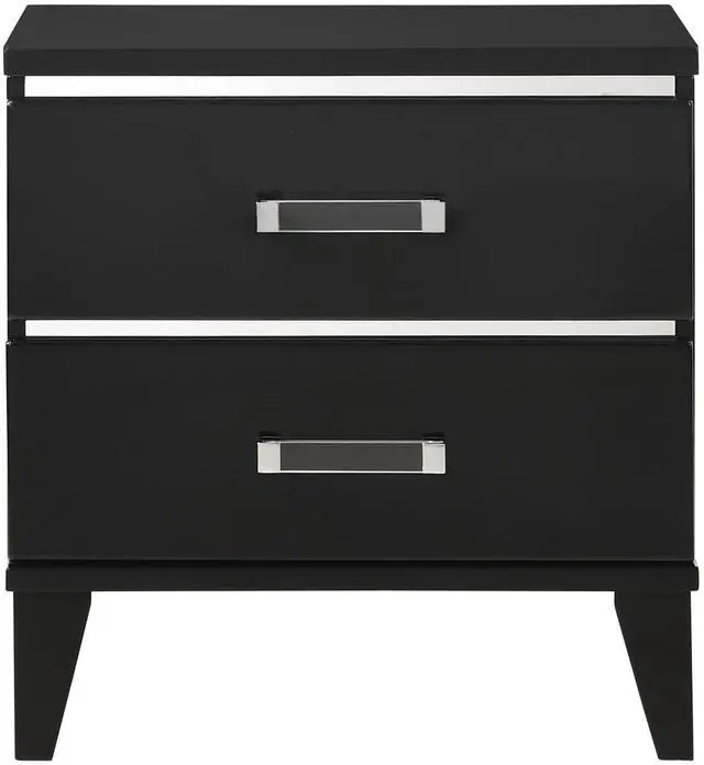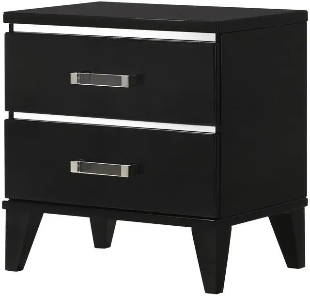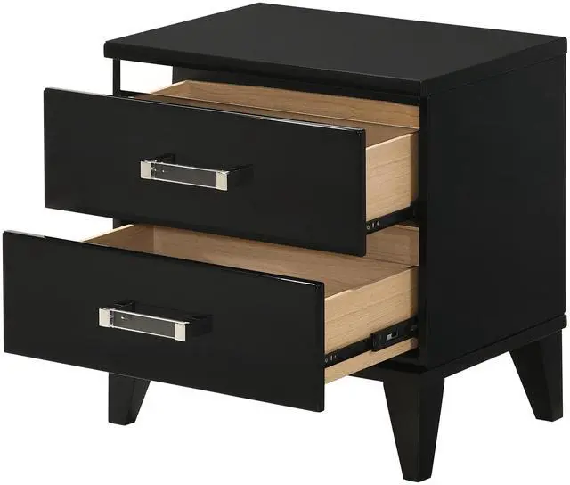 This nightstand features two spacious storage drawers, providing ample space for storing bedside essentials like books, electronics, or personal items.