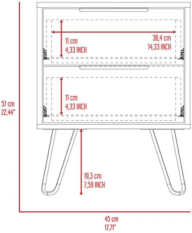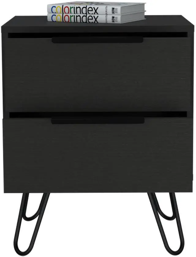 Nuvo 2 Nightstand,Two Drawers, Hairpin Legs