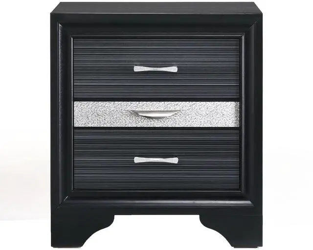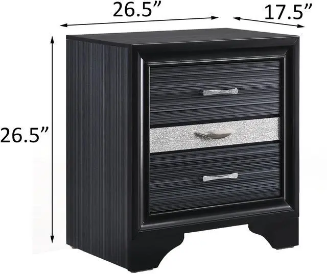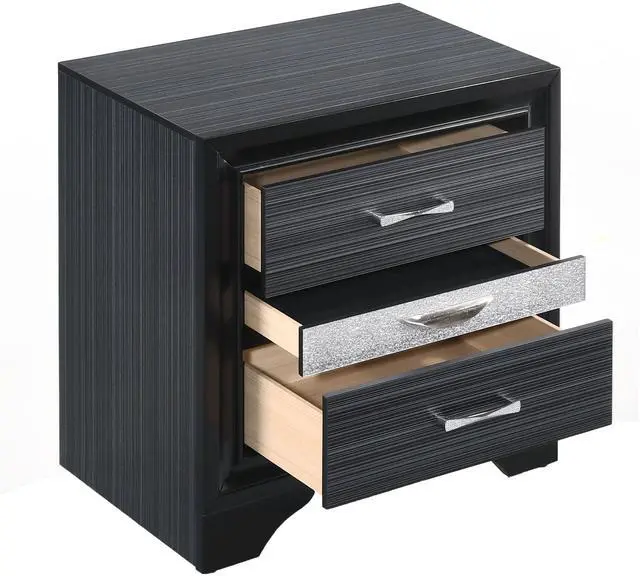 This sleek contemporary nightstand elevates your bedroom with its modern sophistication, while its two regular drawers and dedicated jewelry drawer provide versatile storage solutions for various items, ensuring your space remains tidy and organized. The felt-lined interior of the jewelry drawer offers a protective and organized space for your precious accessories, keeping them safe and easily accessible whenever needed.