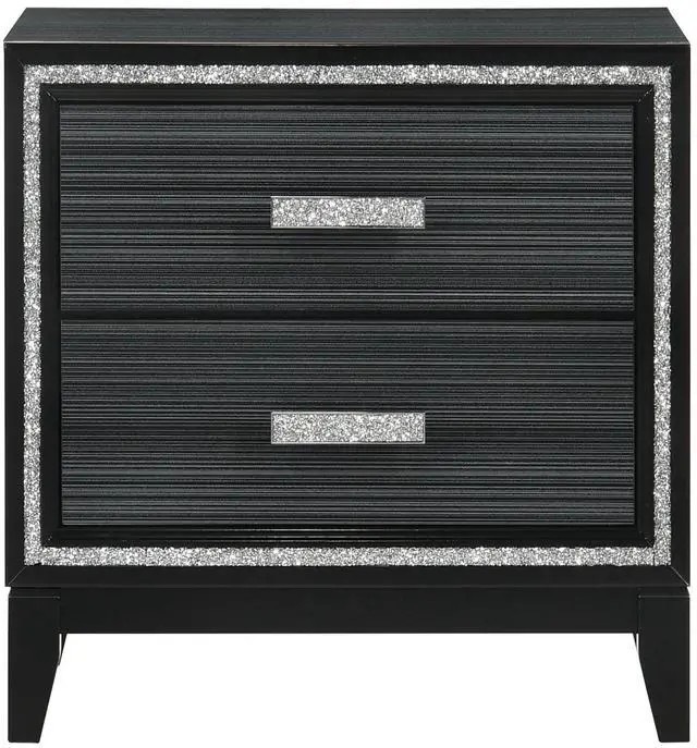 This two-drawer nightstand provides generous storage, keeping your essentials neatly organized and easily accessible. Its modern design, infused with a touch of glam flair, adds a stylish and contemporary element to your bedroom decor, while the safety stop mechanism in each drawer ensures smooth and controlled closing, enhancing both convenience and safety.