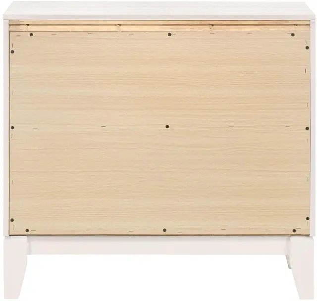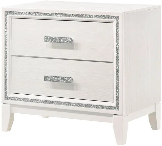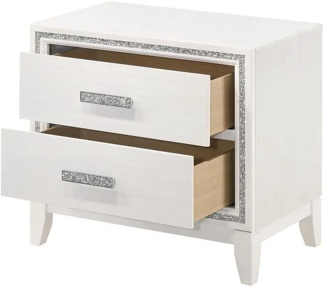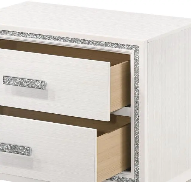 This elegant nightstand effortlessly combines style and functionality with its sleek design and two spacious storage drawers.