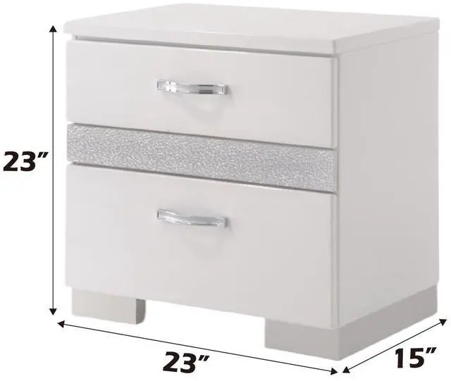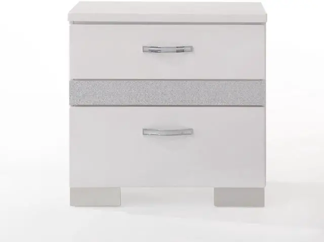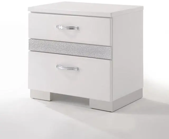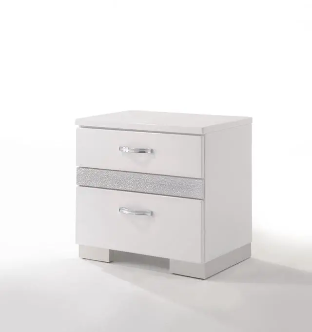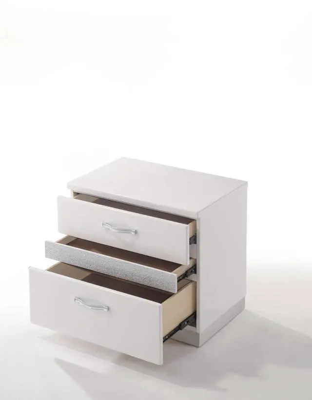 With its sleek, modern design and clean lines, the nightstand suits contemporary bedrooms, while the stylish metal handles contrast beautifully with the white finish for an elegant touch.