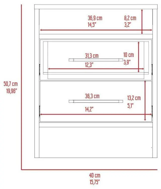 • Metal hardware for smooth running drawers