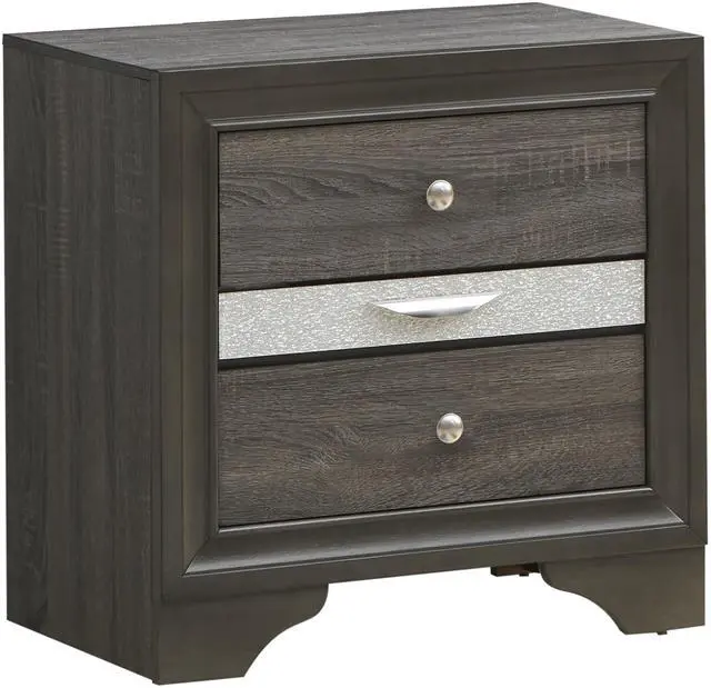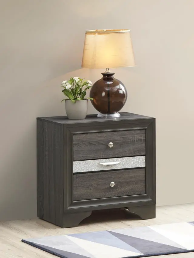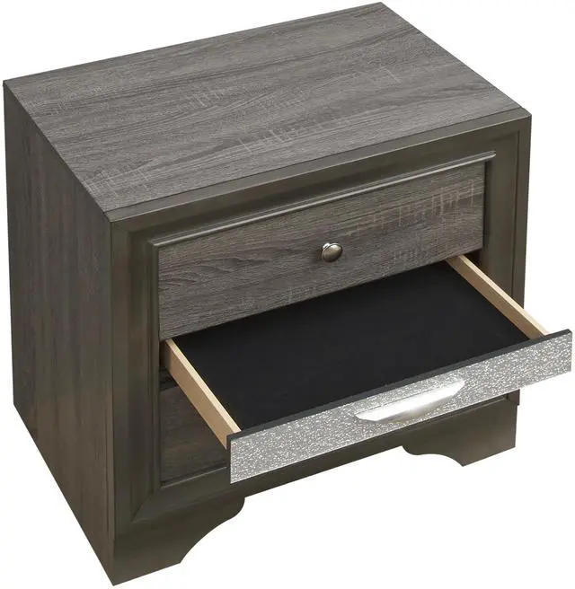 The stylish gray laminate wood grain finish enhances the decor of any bedroom space beautifully.