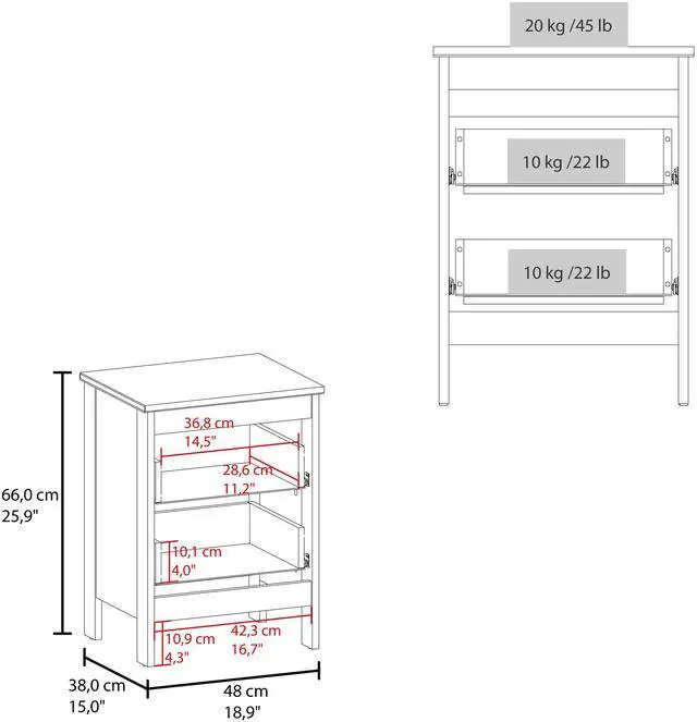 Dimensions: H 25.9 x W 18.9 x D 15Ready to assemble