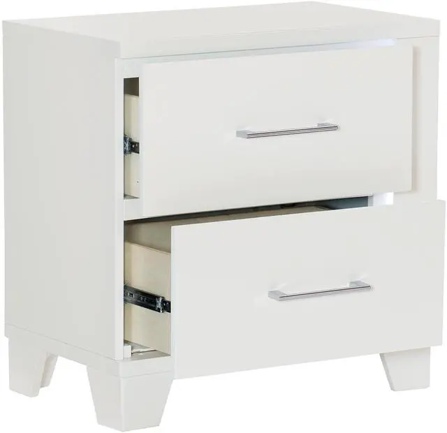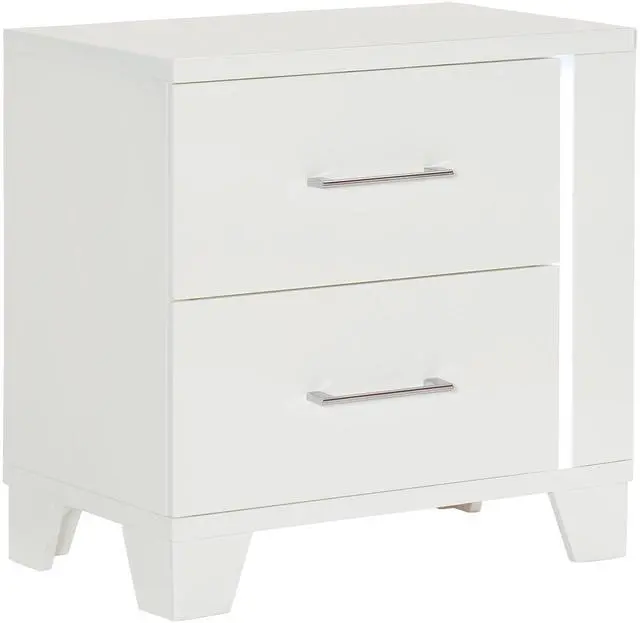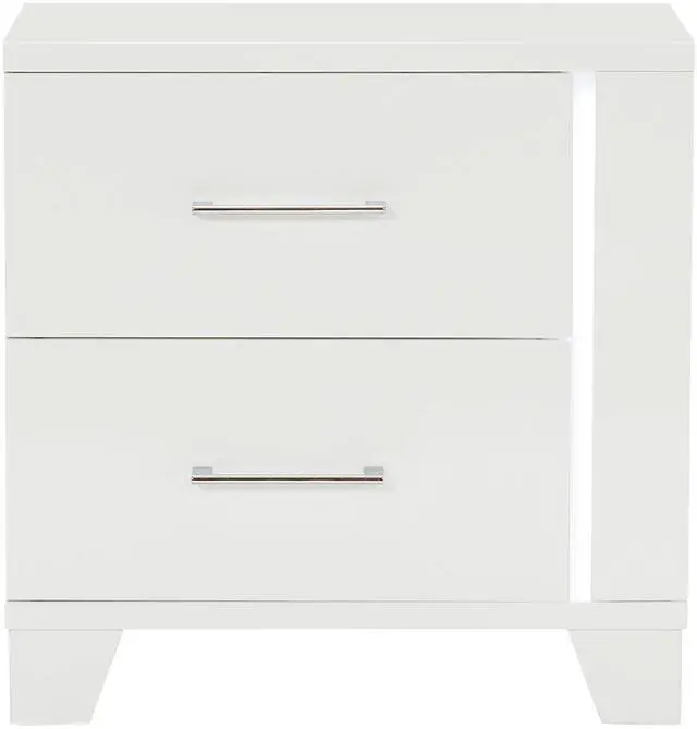 The visually stunning Kerren Collection is a modern study on line and light. LED enhances the front side of the nightstand.