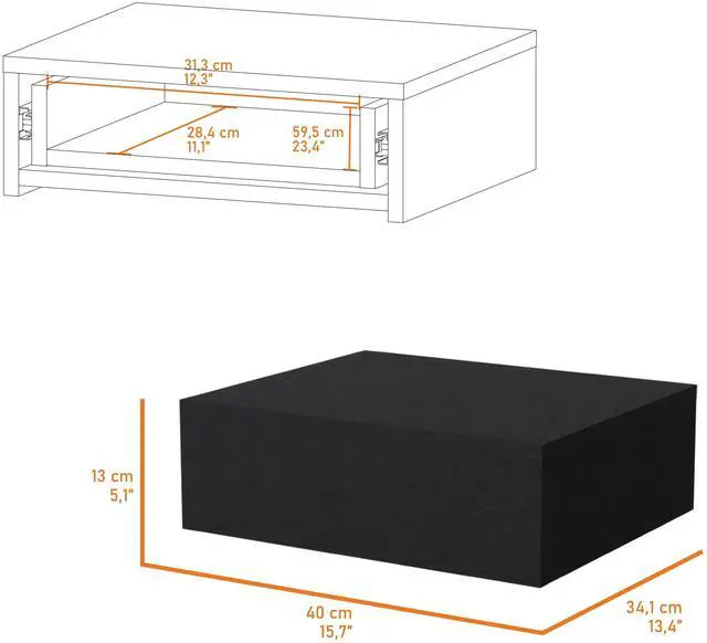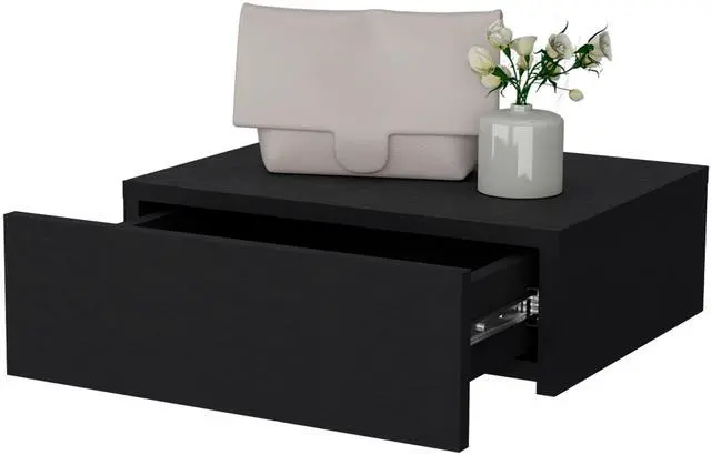 Introducing the floating nightstand, a fusion of modern minimalism and functionality designed for seamless wall-mounting, freeing up floor space for an airy, uncluttered ambiance. With a generously sized top surface providing a convenient platform for nighttime essentials and a spacious drawer boasting ample storage dimensions for personal items.