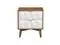 whisper-quiet smooth metal side drawer glides, and white pyramid-shaped drawer fronts with brass pulls