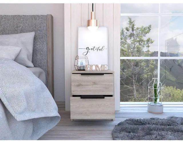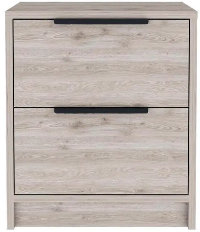 Modern Nightstand 19" H, Two Drawers, Light Gray