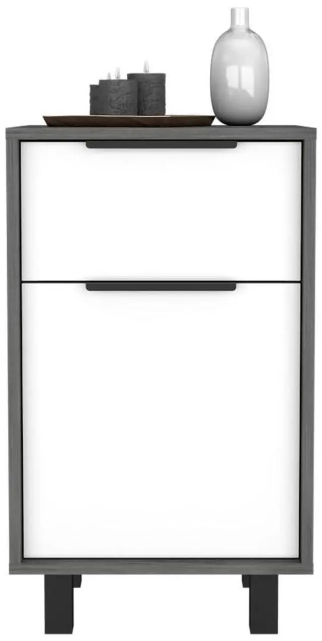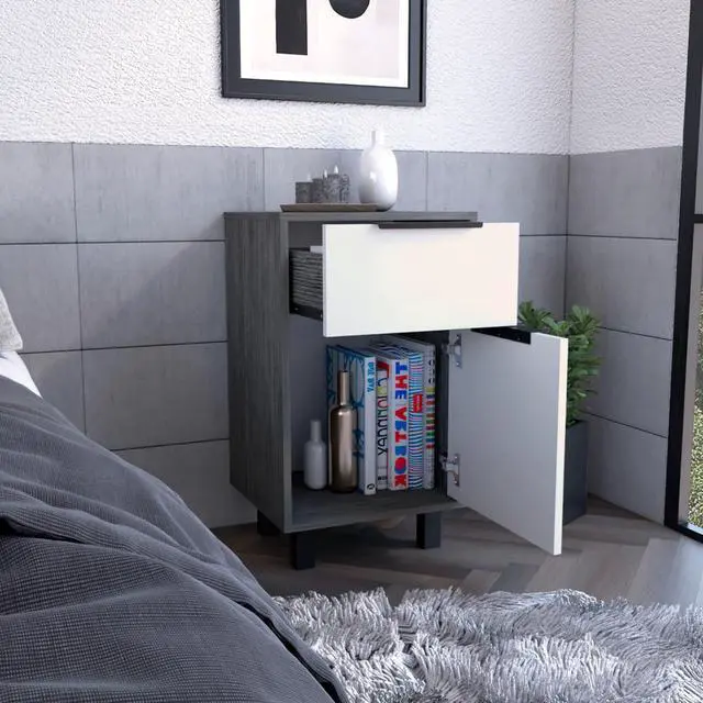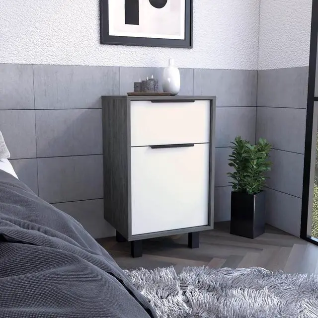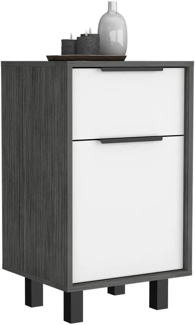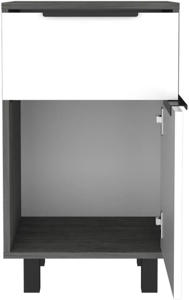 Nightstand 27" H, One Drawer, Storage with Door, Four Legs, Smokey Oak / White