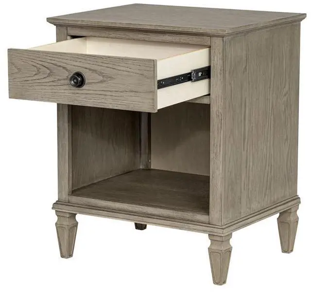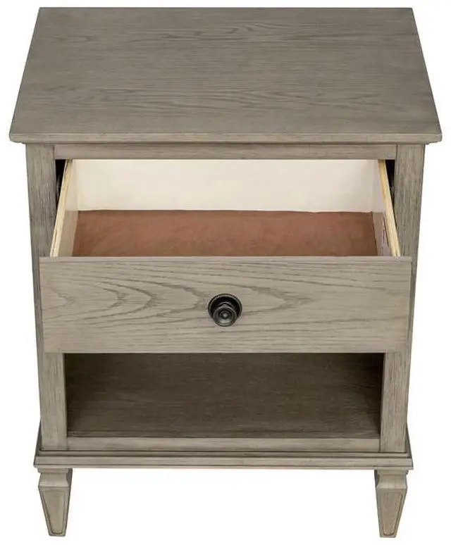 MDF and wood veneer, plywood, solid wood legs, drawer with metal glide