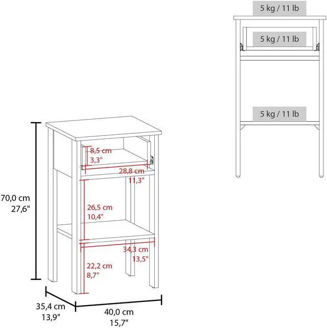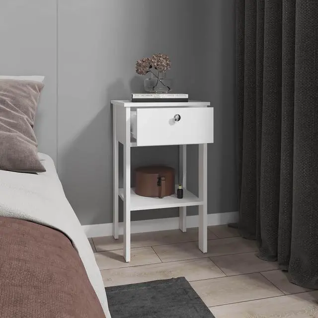 Nightstand, 1 Drawer, 1 Shelf, 4 Legs, White