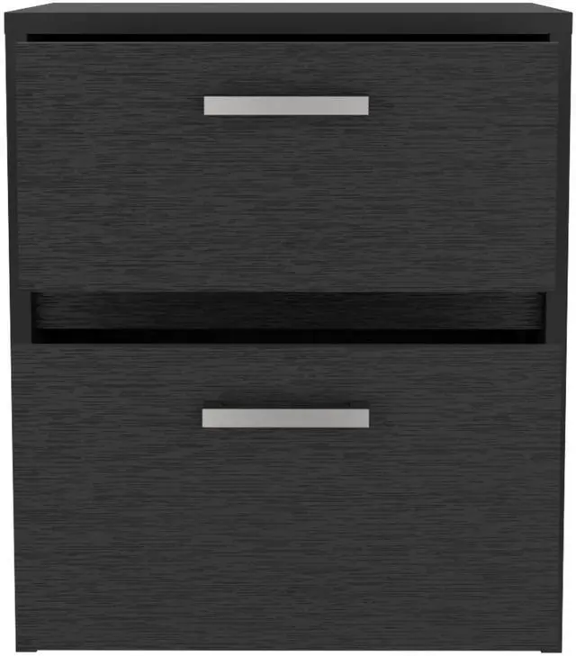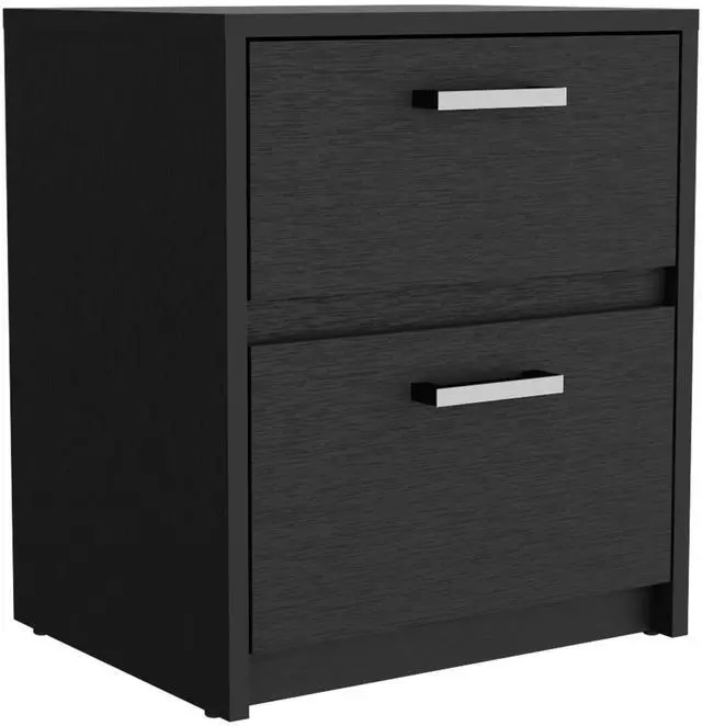The robust drawer handles provide a modern touch to this nightstand.