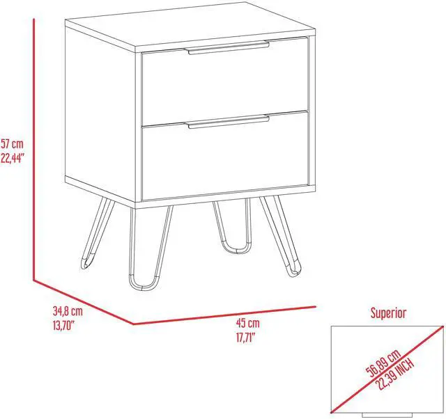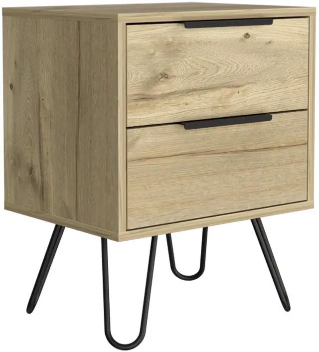 Nuvo 2 Nightstand,Two Drawers, Hairpin Legs