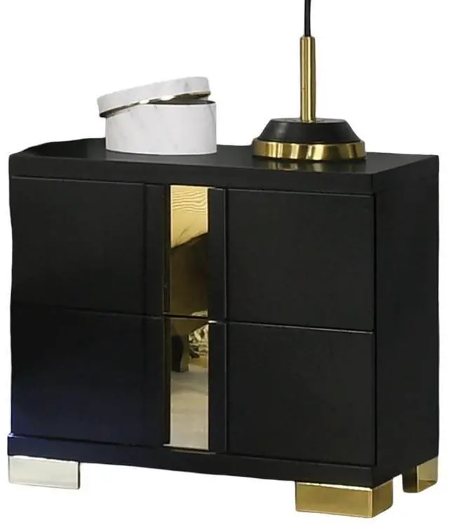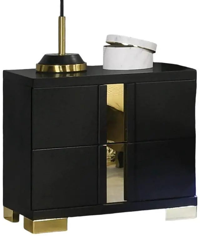Product Description:-Enlighten your bedroom with this lovely bedside side table, offers unique gold finish handles acrylic trim. This 2-drawers nightstand allows you to flair your relax space with instant storage drawers space of 2x drawers. Product Dimensions:- Nightstand:- 23"W X 15.5"D X 22"H Listing Includes :- 1x Nightstand Only. Bed, Dresser, Mirror And Chest Is Not Included. Simple Assembly Requires:
