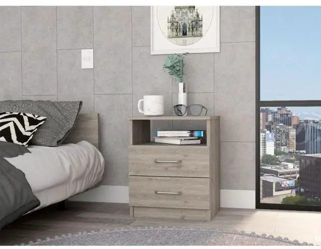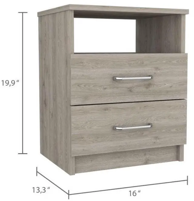 Nightstand 20"H, Two Drawers, One Shelf, Superior Top, Light Gray