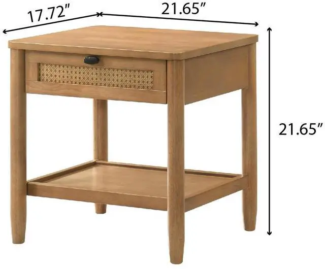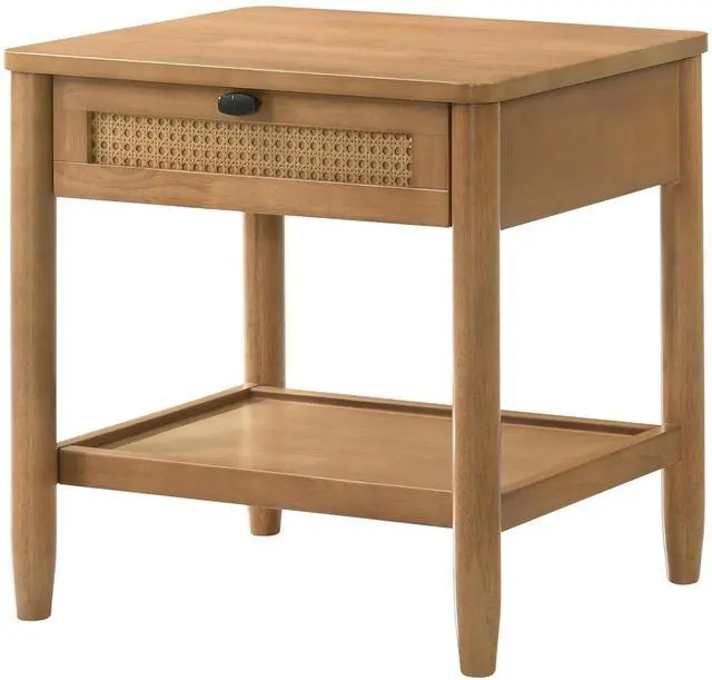 Vichy Single-Drawer Bedroom Nightstand with Shelf, Light Walnut