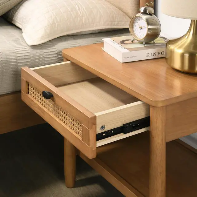 [STORAGE SOLUTION]: The single-drawer nightstand with a storage shelf underneath is designed to maintain style and practicality. Its spacious drawer provides ample storage space for all your essentials, keeping your belongings organized and easily accessible.