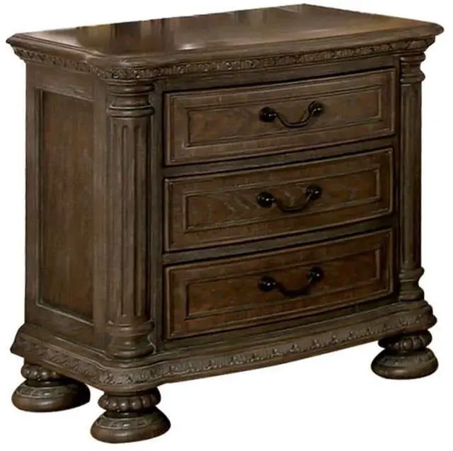 Description:- This ornately-carved night stand pair beautifully with the dramatic camelback headboard of its matching bed collection. With its rustic natural tone finish and wood carved details, there is no denying the impressive feel of this luxurious night stand. Dimensions :- Nightstand - 30"W X 18"D X 29 5/8"H Listing Includes:- 1x Nightstand only. BED,DRESSER,MIRROR,CHEST - NOT INCLUDED.