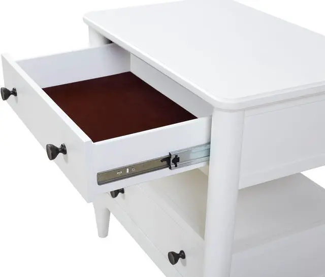 Open Nightstand White Finish With 2 Drawers