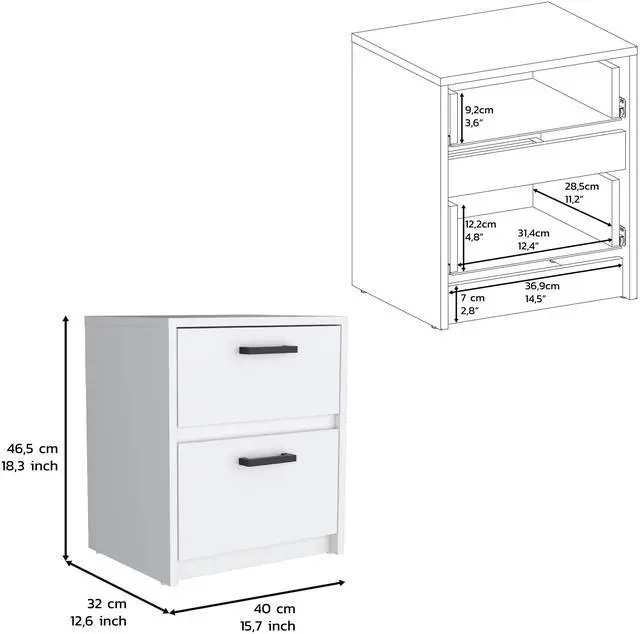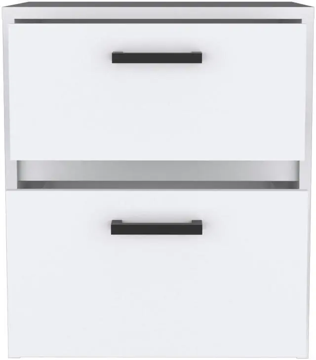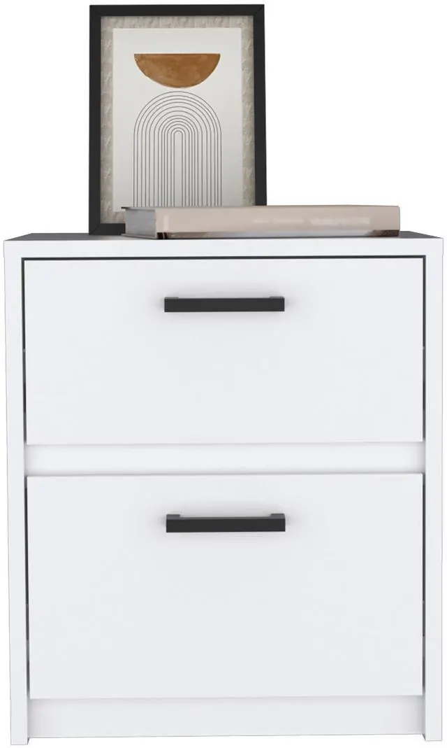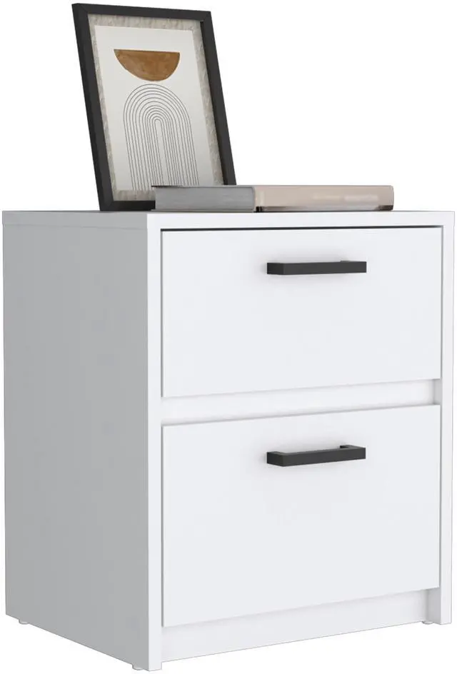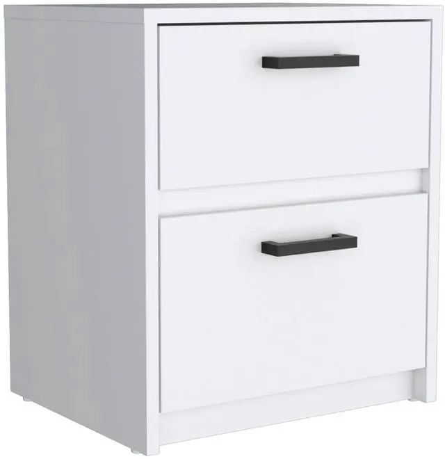 Nightstand 18"H , 2 Drawers with Metal Handles, White