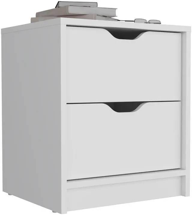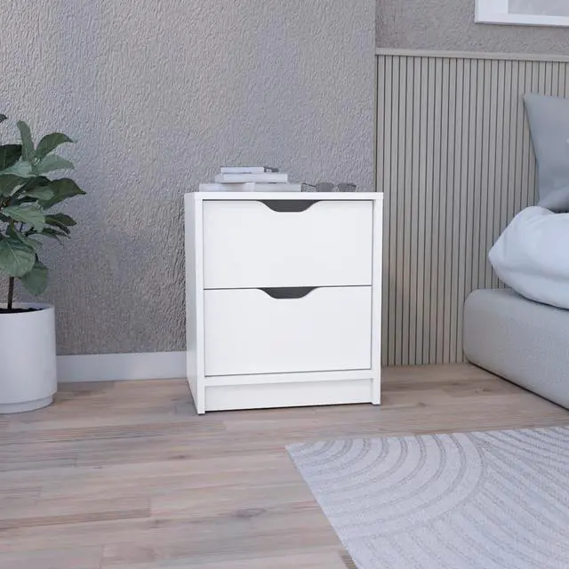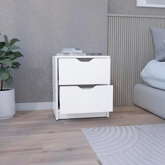 It has two spacious drawers, which are perfect for storing night essentials or other items (12,7"W X 11,2"D)