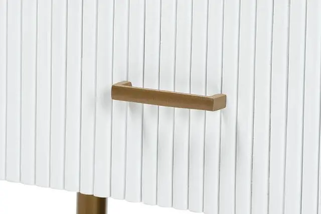 Timeless style arrives to reinvigorate your space in the form of the lovely Beyla dresser. Made in Indonesia, this mid-century piece consists of a sturdy wood frame supported by metal legs. Three drawers offer spacious storage for clothes, linens, and more while reserving the tabletop as a fantastic display area. The Beyla will arrive fully assembled and showcases a beautiful fluted design rich with visual allure. Rounded legs complete the look, making the Beyla dresser a stunning addition to any layout.