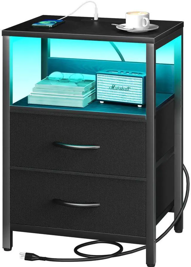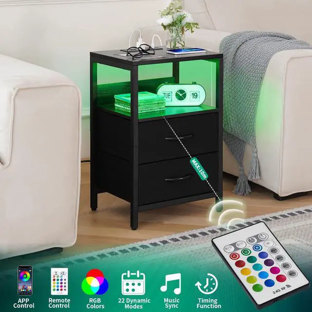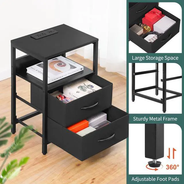Large fabric drawers provide ample storage space for organizing your nighttime accessories.
