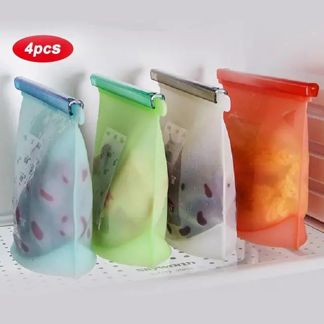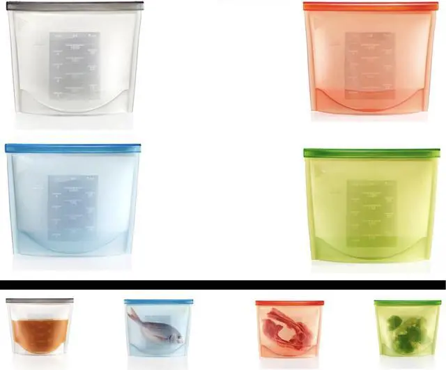 TVTimeDirect - Re-sealable reusable food-grade silicone storage bags are here! This item comes equipped with four bags each able to hold up to 4 cups of storage room. The measurements are labeled on the side of the bag for convenience. With an airtight leak-proof vacuum seal you can store liquids and solids in these bags! Great for freezing meats or storing fruit for keeping. Also, marinate your steak or save your leftover soup. Our Silicone Reusable bags are even great for sending the kids off with a snack! These bags can withstand heat up to 482 F to -58 F.