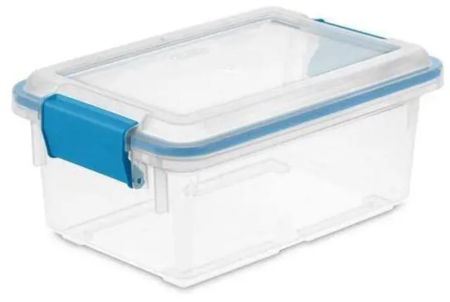 Sterilite 7.5 Qt Gasket Box, Stackable Storage Bin with Latching Lid and Tight Seal, Plastic Container to Organize Basement, Clear Base, Lid, 1-Pack
