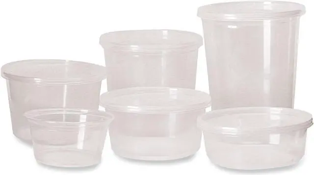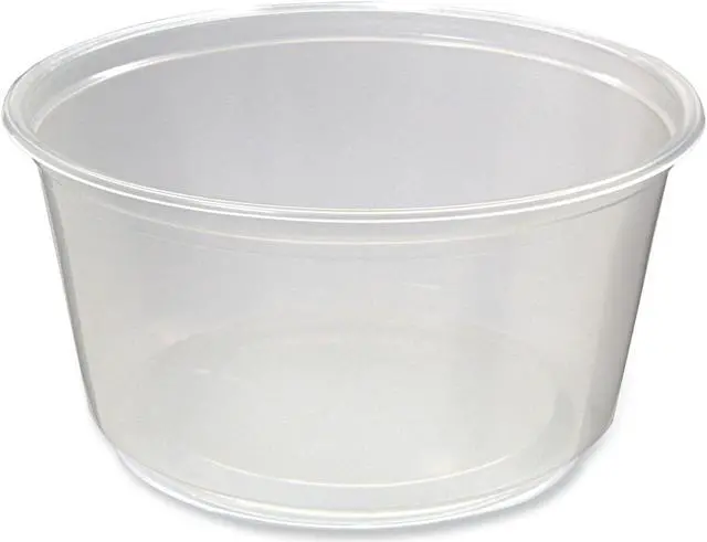 Package salads, soups and more in flavor- and odor-transfer-proof containers. Printable surface provides branding and labeling opportunities. Smooth-rolled, doubled-over rims enhance rigidity. Product line's standardized diameter delivers one-lid-fits-all convenience. Microwave-safe polyethylene withstands temperatures of up to 240°F.