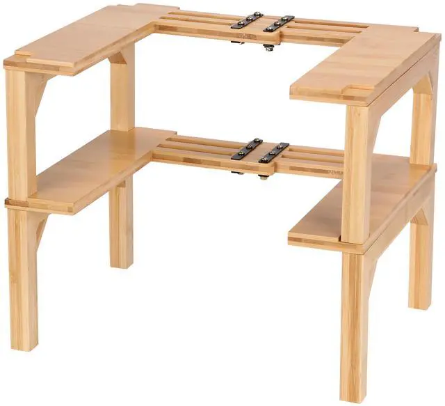 Use this 2-tier bamboo spice rack to store the food cans, beverage cans and spice bottle in cabinets or desktops to keep your cabinets clean and organized! Its extendable and stackable design make it store your spice bottle with the minimum space and fit more kinds of cabinets. Bamboo material with smooth coating surface ensures durability, long-term use and easy wipe cleaning. Just take it home and use it to turn a mess of spices into an organized masterpiece!