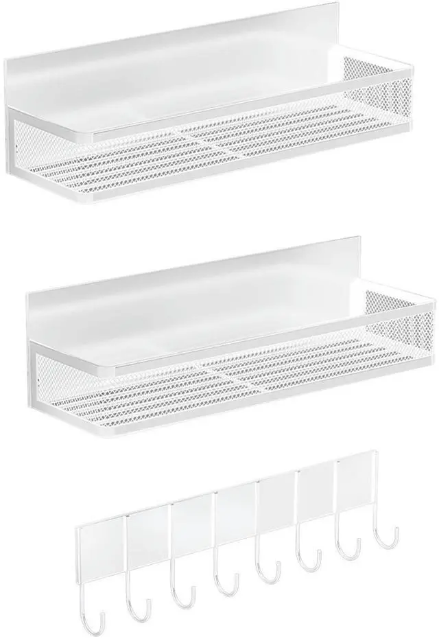 3 Tier Storage: The large or medium seasoning rack is ideal for storing sugar, salt, olive oil, spices, pepper or other small items while the hook shelf with 8 hooks is perfect for holding scissors, measuring cups, spoons, oven mitts, keys etc..