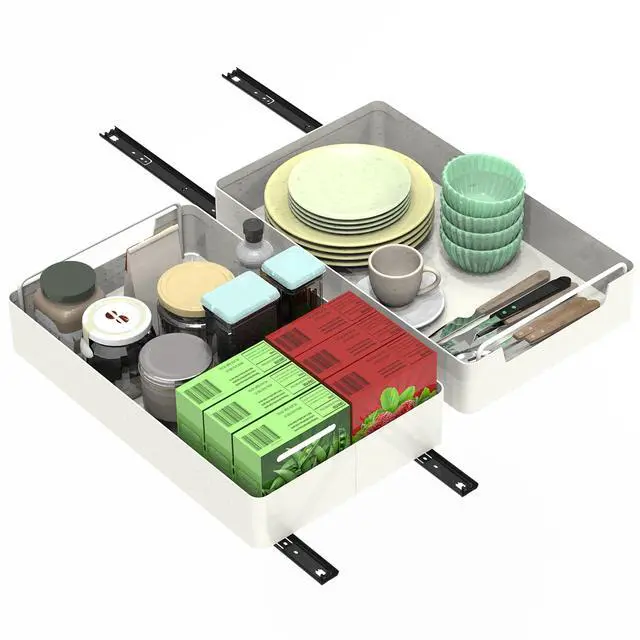Smooth Sliding & Considerate Design: The Cabinet Drawer designed with special ball rails, is able to glide out in just 1 second smoothly, quietly and stably, with no worries about jamming. Besides, 4 holes on the corners and 4 groves on the sides make water drip out of the drawer more easily and ensure great air ventilation to avoid moist and odor.
