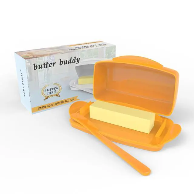 This simple flip-top butter dish is suitable for most countertop styles and for a variety of occasions. Store it in the refrigerator, on the counter, or take it to a picnic. It's a perfect gift for your wife, family, friends, or butter lovers.
