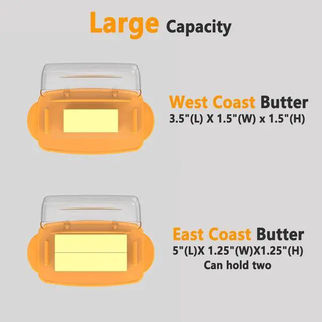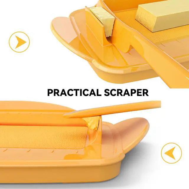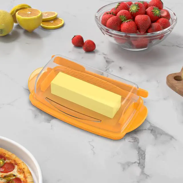 This plastic butter dish features a unique connecting design that combines two parts into one, creating a flip-top butter dish. No more worrying about messy butter lids or butter stains on countertops. Made of food-grade, unbreakable plastic, this lidded butter dish is BPA-free and freezer- and top-rack dishwasher-safe.