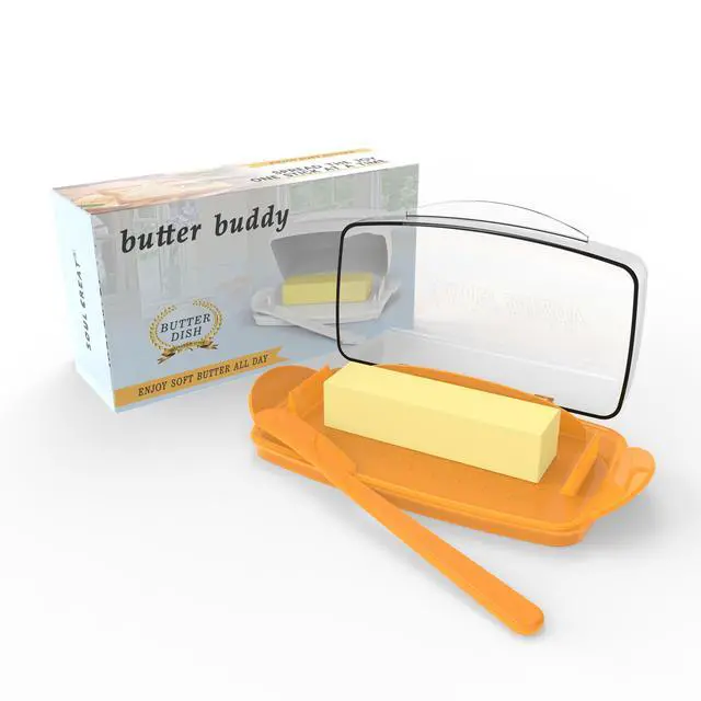 This simple flip-top butter dish is suitable for most countertop styles and for a variety of occasions. Store it in the refrigerator, on the counter, or take it to a picnic. It's a perfect gift for your wife, family, friends, or butter lovers.