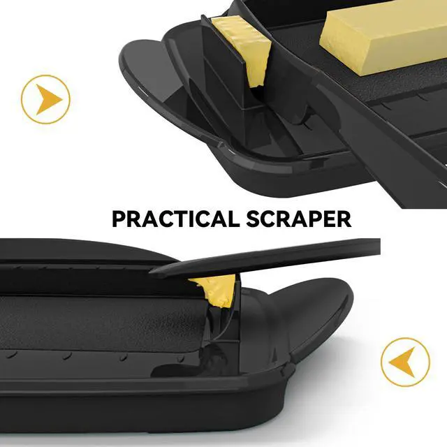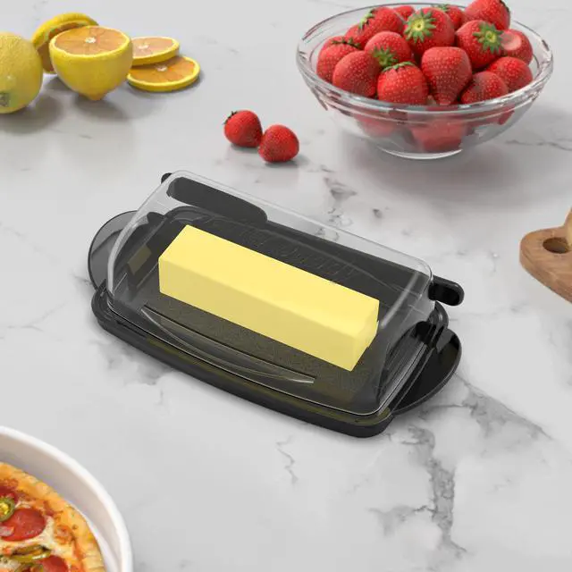 This plastic butter dish features a unique connecting design that combines two parts into one, creating a flip-top butter dish. No more worrying about messy butter lids or butter stains on countertops. Made of food-grade, unbreakable plastic, this lidded butter dish is BPA-free and freezer- and top-rack dishwasher-safe.