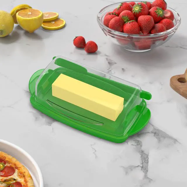 This plastic butter dish features a unique connecting design that combines two parts into one, creating a flip-top butter dish. No more worrying about messy butter lids or butter stains on countertops. Made of food-grade, unbreakable plastic, this lidded butter dish is BPA-free and freezer- and top-rack dishwasher-safe.