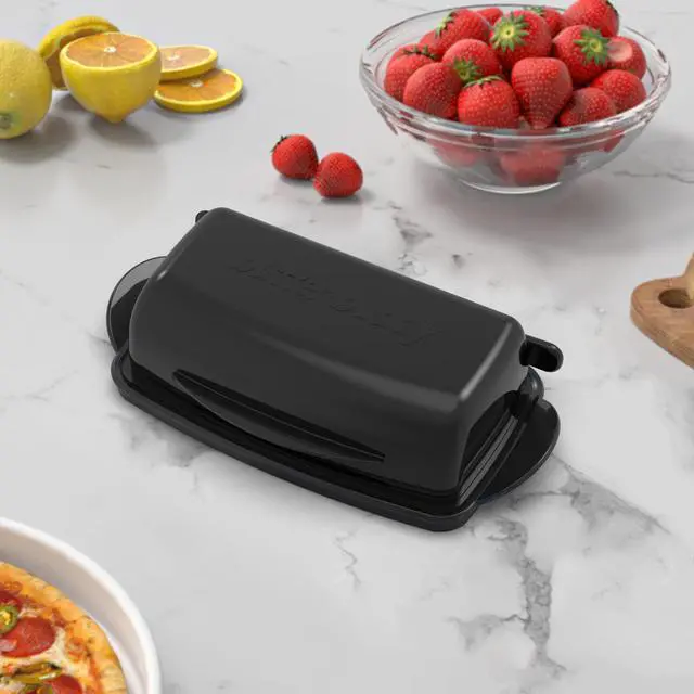 This plastic butter dish features a unique connecting design that combines two parts into one, creating a flip-top butter dish. No more worrying about messy butter lids or butter stains on countertops. Made of food-grade, unbreakable plastic, this lidded butter dish is BPA-free and freezer- and top-rack dishwasher-safe.