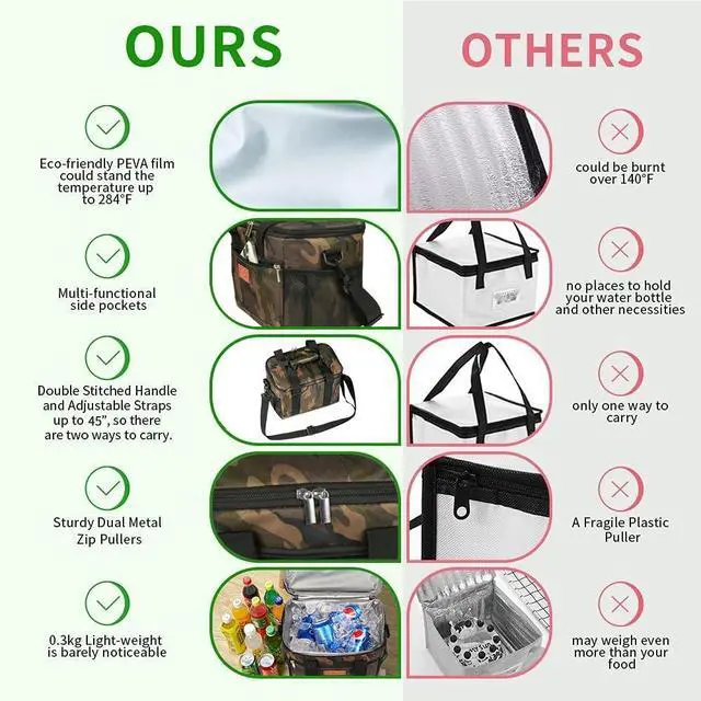 Introducing the Collapsible Insulated Lunch Bag, your perfect companion for keeping meals fresh and beverages cool on the go. This versatile thermal cooler tote is meticulously designed with a leakproof interior, ensuring that your food and drinks stay secure without any spills or messes. The large capacity is ideal for carrying multiple food containers, snacks, and drinks, making it perfect for work, picnics, or travel. Constructed from high-quality, durable materials, this lunch bag is built to withstand everyday use while maintaining its sleek appearance. Its collapsible design makes it easy to store when not in use, saving valuable space in your kitchen or car. The multi-pocket design provides ample room for all your essentials, including utensils, napkins, and personal items, keeping everything organized and easily accessible. Comfort is key with the Collapsible Insulated Lunch Bag, featuring sturdy handles and an optional shoulder strap for easy carrying. The exterior is wear-resistant, ensuring long-lasting use, while the interior is easy to clean, simplifying maintenance. This lunch bag is not just functional but also stylish, making it an excellent choice for adults alike. Invest in a lunch bag that offers a perfect blend of practicality, convenience, and style. Whether you're heading to the office, or enjoying outdoor activities, the Collapsible Insulated Lunch Bag ensures your meals are fresh and ready whenever you are.
