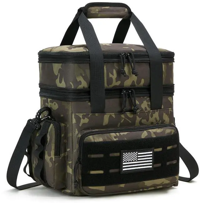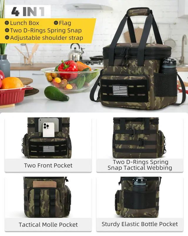 Tactical Lunch Bag & Lunch Box for Men - Large Double Deck Expandable Insulated Soft Adult Lunchbox for Work - Cooler Bag for Beach, Picnic, Camping, OutdoorTravel (Camo, 16L)
