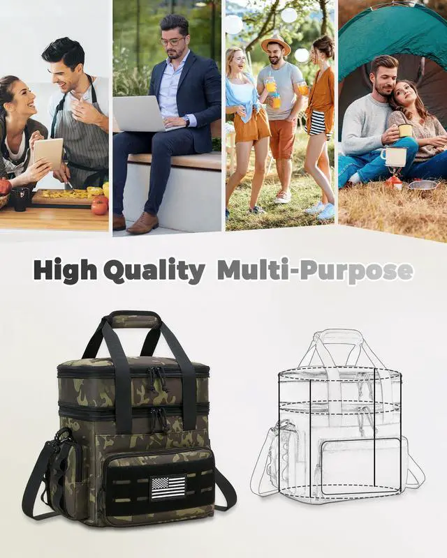 Tactical Lunch Bag & Lunch Box for Men - Large Double Deck Expandable Insulated Soft Adult Lunchbox for Work - Cooler Bag for Beach, Picnic, Camping,OutdoorTravel (Camo,16L)