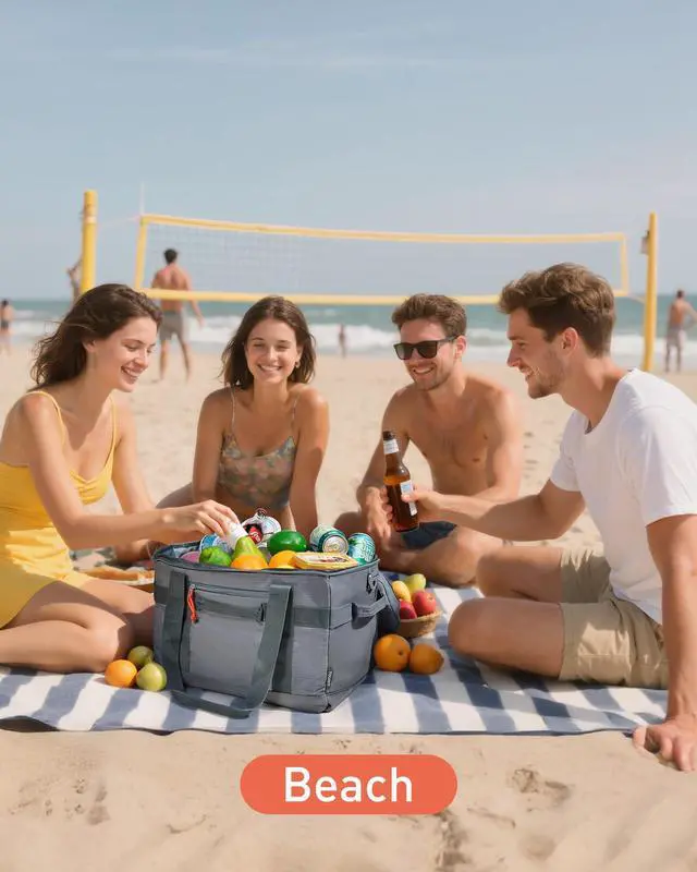 Collapsible Cooler Bag & Versatile Use: An elastic rope on the top of the cover, which can put towels and other daily necessities or you can use it to fold the bag up easily to save space when not in use. Large capacity with a longer time insulated, and can also be filled with various snacks and lunches. It is an ideal companion for you to travel or go to work.